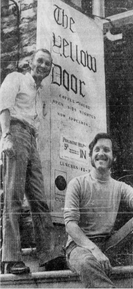 The Yellow Door Coffeehouse grew out of an initiative of the Student Christian Movement. Staffed by local artists, it provided a showcase for music and poetry.